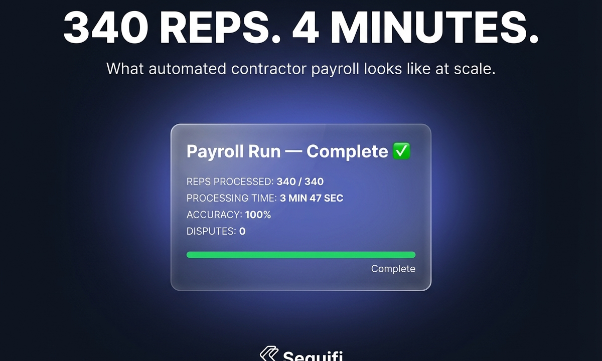 The operators running at this scale without a contractor payroll alternative are spending days on a process that should take minutes. More importantly, they are generating the disputes, delays, and trust gaps that drive their best reps to competitors who pay faster and more clearly.
